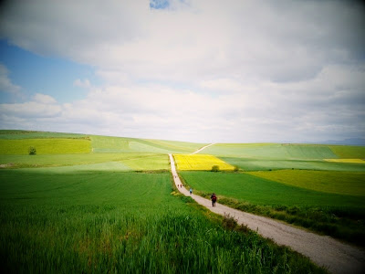 Dopo una buona dormita, verso le 6,30 lasciamo il bell’albergue che ci ha ospitato. Ci incamminiamo tra le stradine deserte di Najete. Dopo tanta pioggia, per la prima volta vedo sorgere il sole. La stupenda falesia di rocce rossastre, alla base della quale è sorta la cittadina di Najete, è illuminata dal sole. È uno spettacolo che si offre a chi si svegli all’alba.