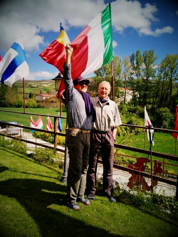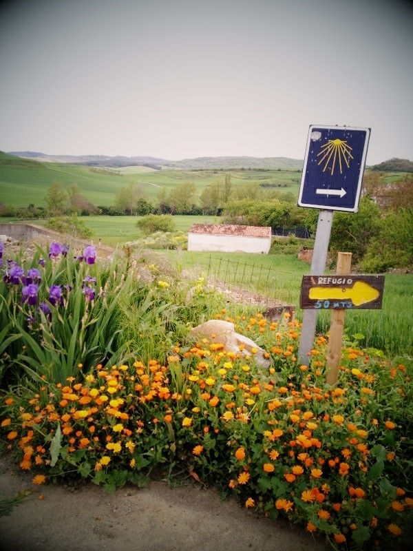 La notte trascorre tranquilla sotto le lenzuola fresche. Tutta una tirata fino al suono della sveglia. Come ogni giorno, do massima cura alla preparazione dei piedi: massaggio accurato con vaselina, spruzzatina di Timodore, calze finissime di cotone senza cuciture, calze da trekking ben aderenti, scarpe ben allacciate. Dopo la consueta ricca colazione, ci inoltriamo nel centro storico tra le viuzze medievali, passando davanti alla famosa cattedrale di Santo Domingo che conserva al suo interno preziose opere d’arte ed il famoso recinto col gallo e la gallina vivi. Vengono sostituiti ogni due mesi dai contadini locali per mantenere vivo il ricordo di quanto accaduto nel XII secolo proprio qui a Santo Domingo. Un giovane pellegrino tedesco insieme alla famiglia erano diretti a Compostela. La figlia dell’oste, vedendolo, si invaghì di lui e sperò di diventare sua moglie, ma il ragazzo rifiutò. La ragazza decise così di vendicarsi. Nascose nei poveri bagagli del ragazzo una tazza d’argento e subito andò dal giudice a denunciare l’accaduto. Il giudice fece immediatamente arrestare ed impiccare il giovane. La madre del povero ragazzo, disperata, si rivolse all’apostolo Santiago e questi le apparve davanti dicendole che suo figlio era ancora vivo. Lei corse sulla piazza dell’impiccagione e vide il figlio ancora vivo che le diceva che Santiago lo stava sollevando. Immediatamente, la madre si rivolse al giudice chiedendogli di liberare il figlio perché era ancora vivo. Il giudice le rispose che suo figlio era ancora vivo come le due galline che in cucina da ore bollivano in pentola. In quel momento le galline iniziarono a cantare e svolazzare fuori dalla pentola. Da allora si dice: Santo Domingo della Calzada fece cantar gallina cucinata.