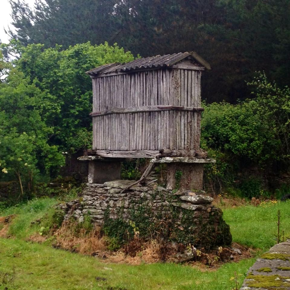 Si incontrano i primi “hórreos”, i lunghi e stretti granai sopraelevati su quattro colonnine di pietra grigia per tenere alla larga i roditori.