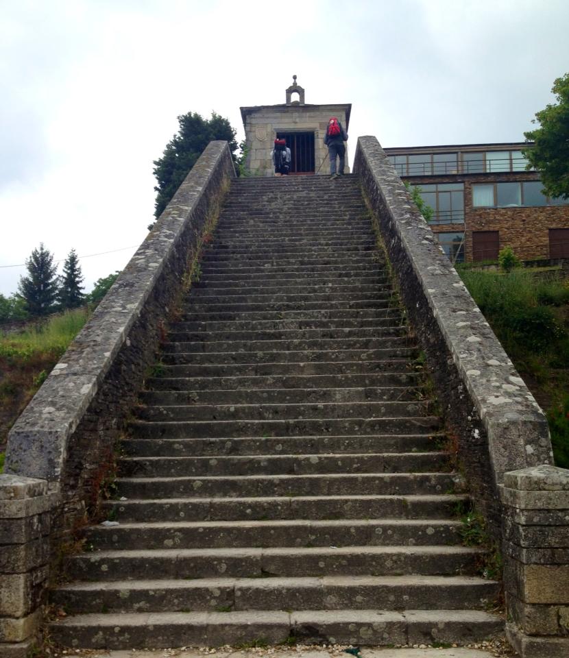 Il percorso è stato tutto un sali scendi che è terminato con una lunga scalinata all’ingresso di Portomarin. Che fatica quelle scale dopo 22 chilometri nelle gambe!
