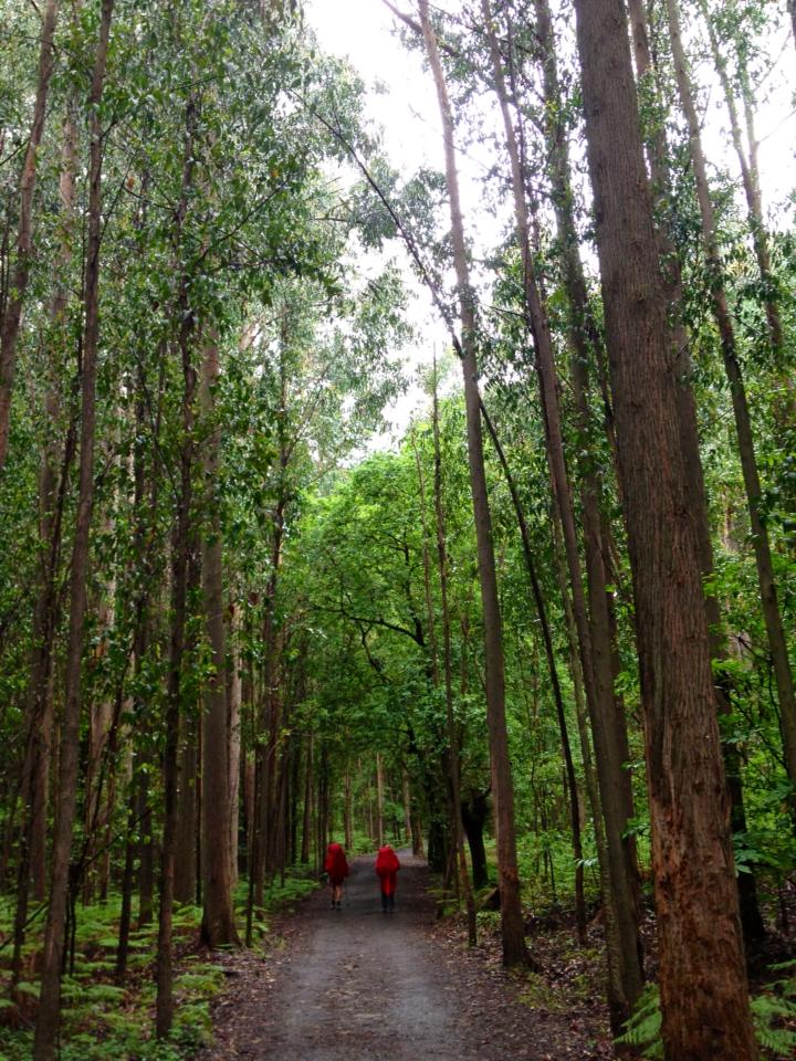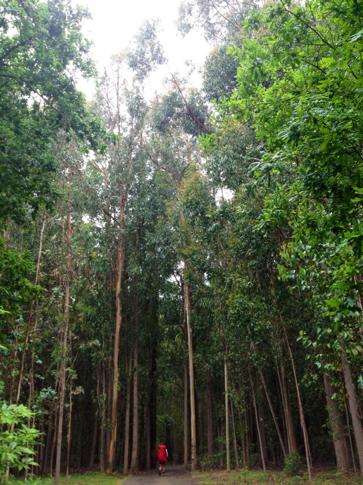 Ormai le querce lasciano il posto ad enormi eucalipti. Boschi incantati di giganteschi alberi che non lasciano penetrare i raggi del sole. Tutto è coperto da felce e muschio. Il profumo è intenso e sembra che quei generosi alberi vogliano, col loro aroma, dare energia al pellegrino esausto, come a volerlo preparare all’emozione dell’arrivo all’agognata meta.