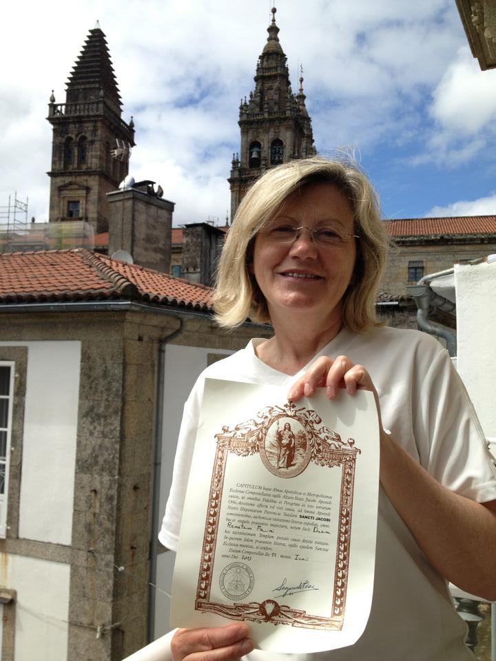 Una tempesta di emozioni, l’arrivo a Santiago. La ricerca dell’Ufficio del Pellegrino che controlla le Credenziali perché tutti i timbri siano regolari. La grande emozione nel ricevere la Compostela. Le congratulazioni dei volontari presenti.