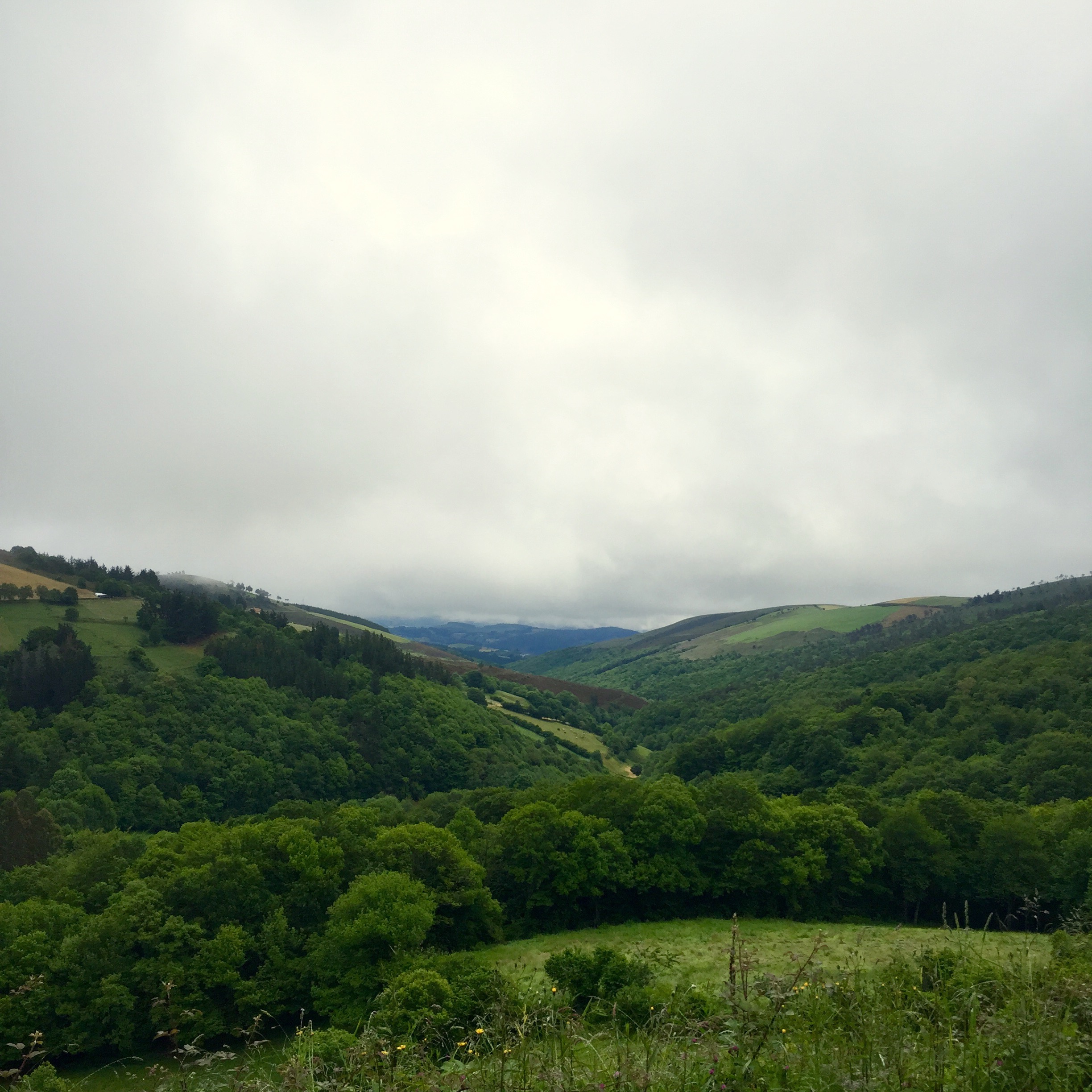 Around midday the fog went up while still covering the Hospitales route which we could see above us all covered by thick grey clouds. With great happiness, once we reached Pola de Allande, the sun made its way among the clouds and soon the sky became clear.