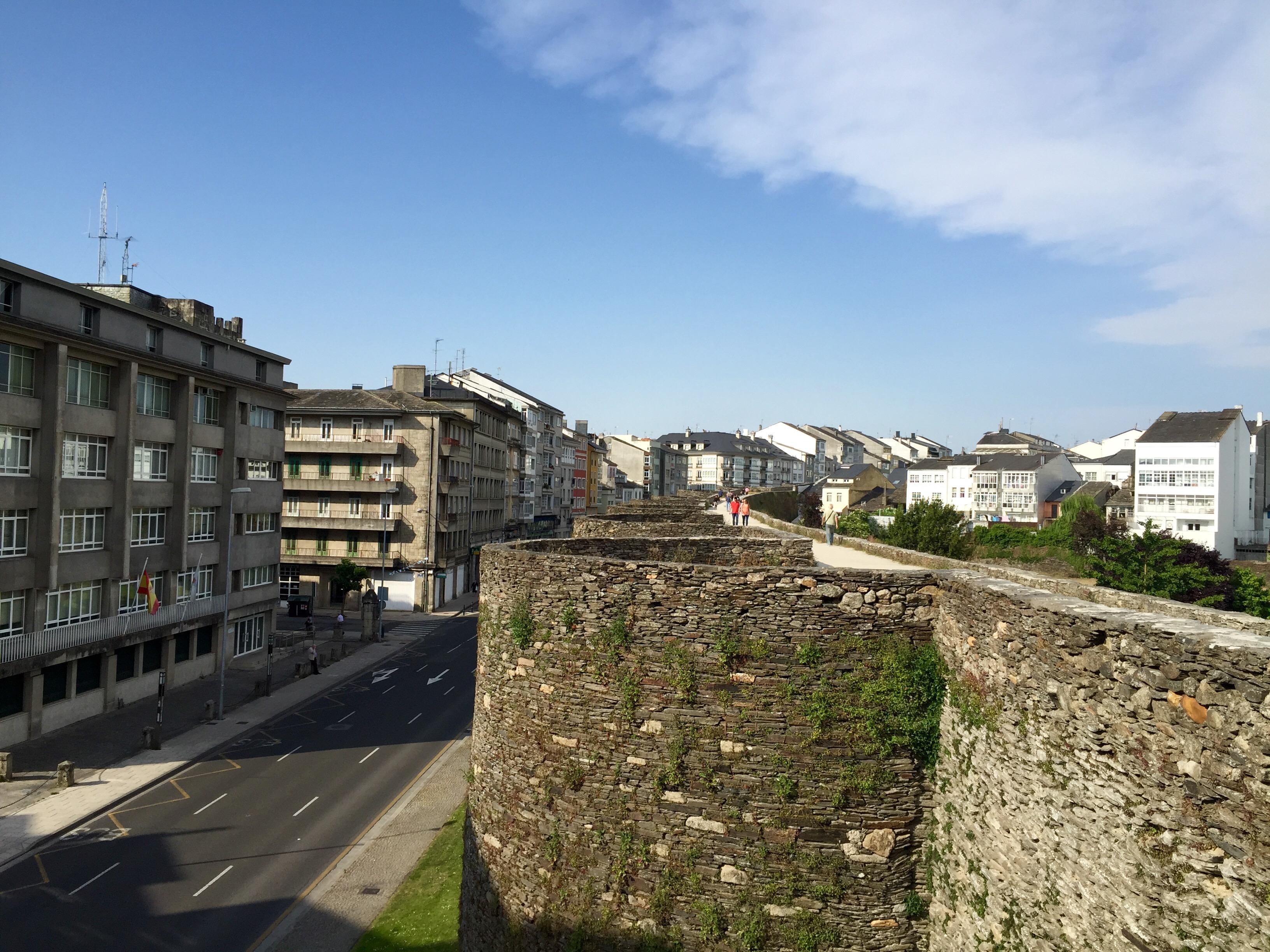 Luckily, waiting for us there is the beautiful hotel Nunez Mendez overlooking a nice pedestrian street. After we spent some time resting, we went sightseeing around Lugo, a town with beautiful buildings and a beautiful cathedral. The walls around the city can all be walked and can allow to view the town from above.