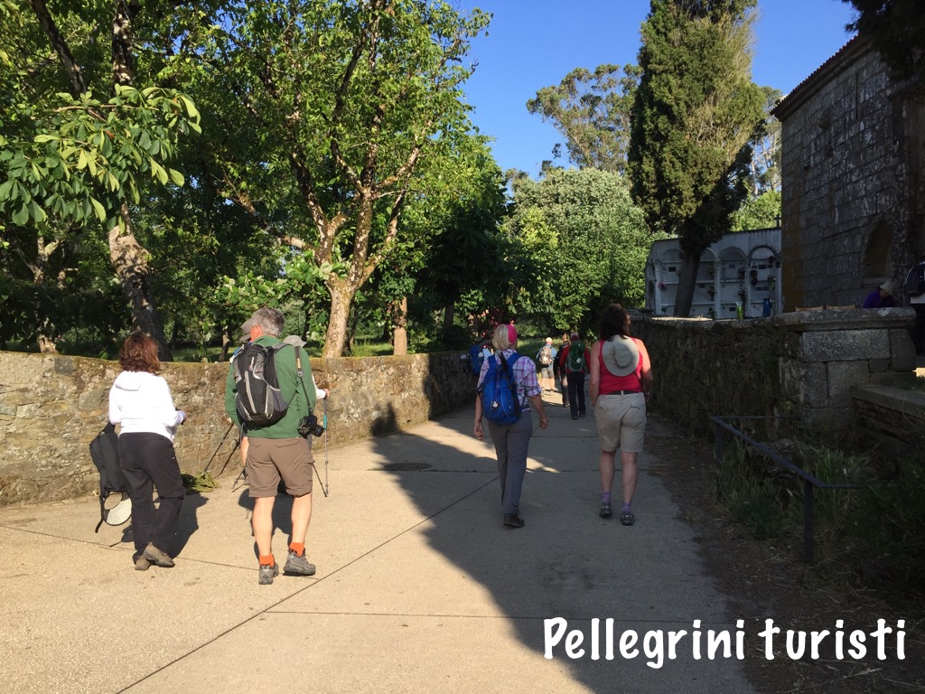 From today, we are immersed in a mass of walking pilgrims, all walking in the same direction, clean shoes, brand new clothes, no backpacks and… moreover, perfumate. These are the “tourist pilgrims”, these that only walk the last 100 km to obtain the Compostela. As I had already written in 2013, their perfume is the thing that stuns me the most. The backpack of a pilgrim needs to carry only the most indispensable things, and before leaving, everything needs to be weighted in order to pick only the lightest things. Perfume is the most useless object to bring along. The “tourist pilgrim” instead has with himself/herself a luggage, brought from one destination to the other by the taxis. Everyday, at destination, the “tourist pilgrim” finds his/her luggage or backpack at the hotel, filed with “useless” objects, such as the perfume.