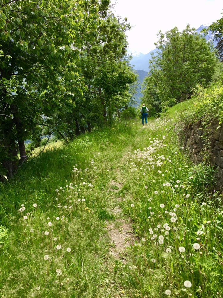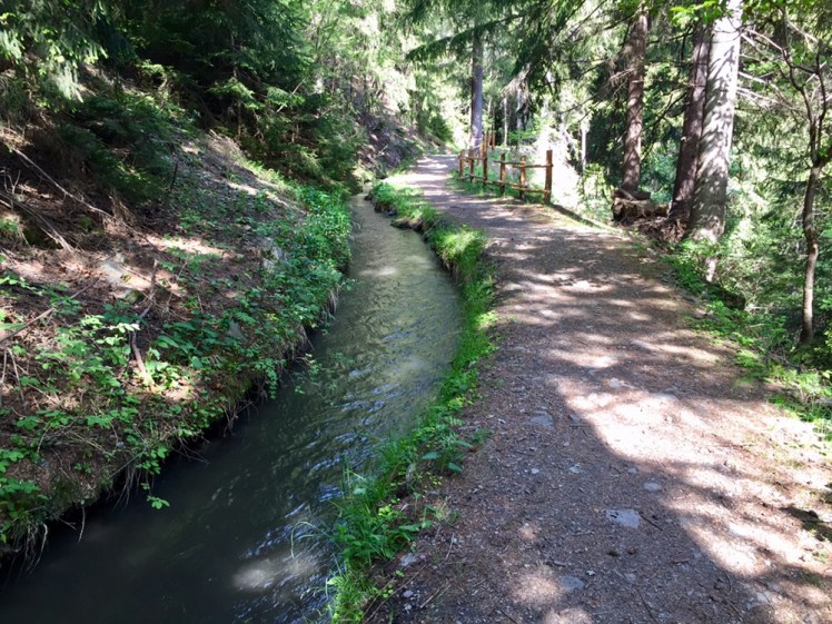 Circa la prima metà del percorso di oggi è pianeggiante e sì sviluppa di fianco ad un “Ru”, i tipici canali di irrigazione valdostani: