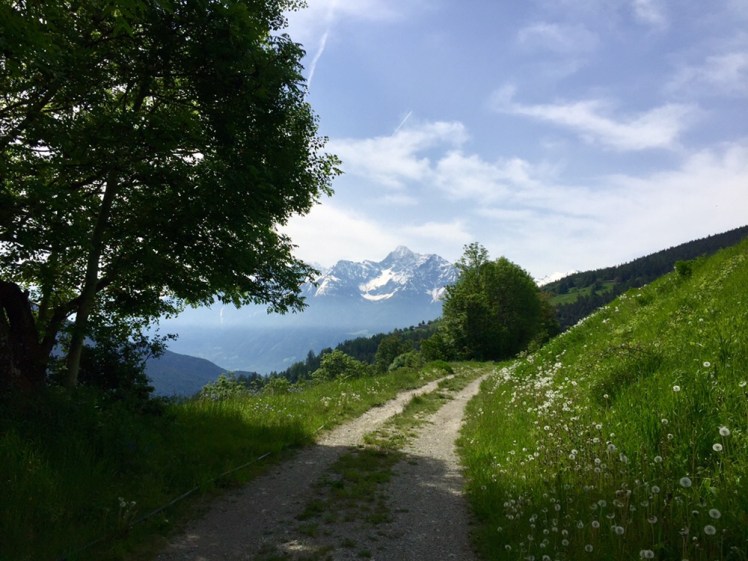 Ogni tanto si apriva un bel panorama sulle montagne innevate che circondano la valle a 360°: