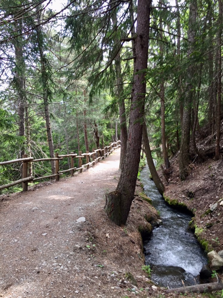 È uno dei sentieri più belli che abbia mai fatto, sempre ben ventilato e ombreggiato. Lo scorrere lento e continuo dell’acqua ha quasi un effetto terapeutico. È anche attrezzato di vari strumenti per esercizi ginnici, che si incontrano spesso.