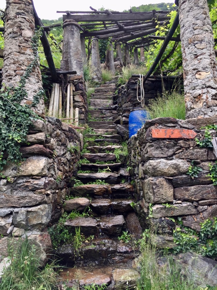 Dal complesso di Settimo Vittone, il sentiero si sviluppa su una vasta area in cui i vigneti si perdono a vista d’occhio e in lontananza si intravvede il castello di Montestrutto.