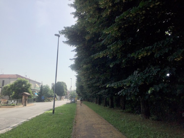 Gli immancabili tigli accompagnano la nostra uscita da Fiorenzuola su bei viali alberati.