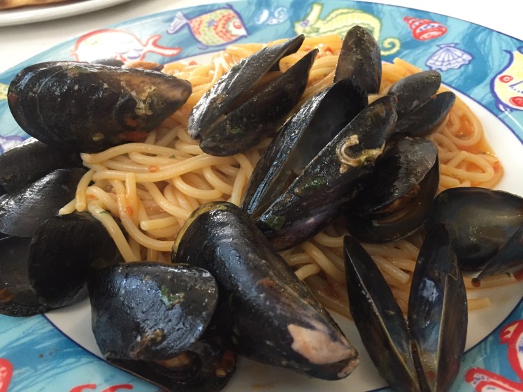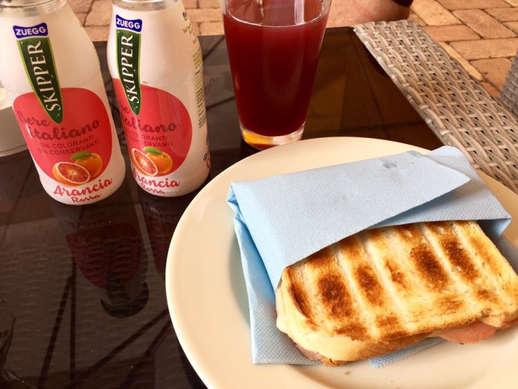 Finita la visita all’Abbazia, ci riposiamo ai tavolini di un bar di fianco alla chiesa e ci godiamo un buon toast con un super succo di arance rosse.
