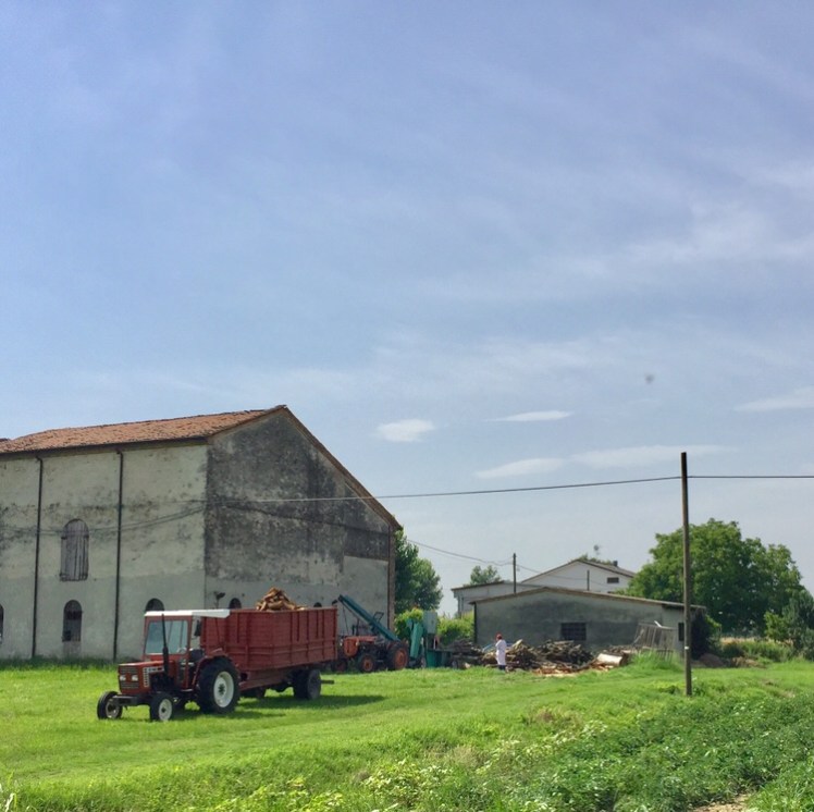 Sulla strada che percorriamo è un viavai continuo di mezzi agricoli che si stanno recando sui campi. In lontananza, ovunque intorno a noi, si vedono mezzi agricoli al lavoro.