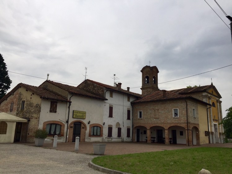 L’ingresso a Castione Marchesi è annunciato, non dal cimitero o dalla torre campanaria, bensì dall’odore penetrante di un allevamento di maiali che sentiamo grugnire anche se non li vediamo.