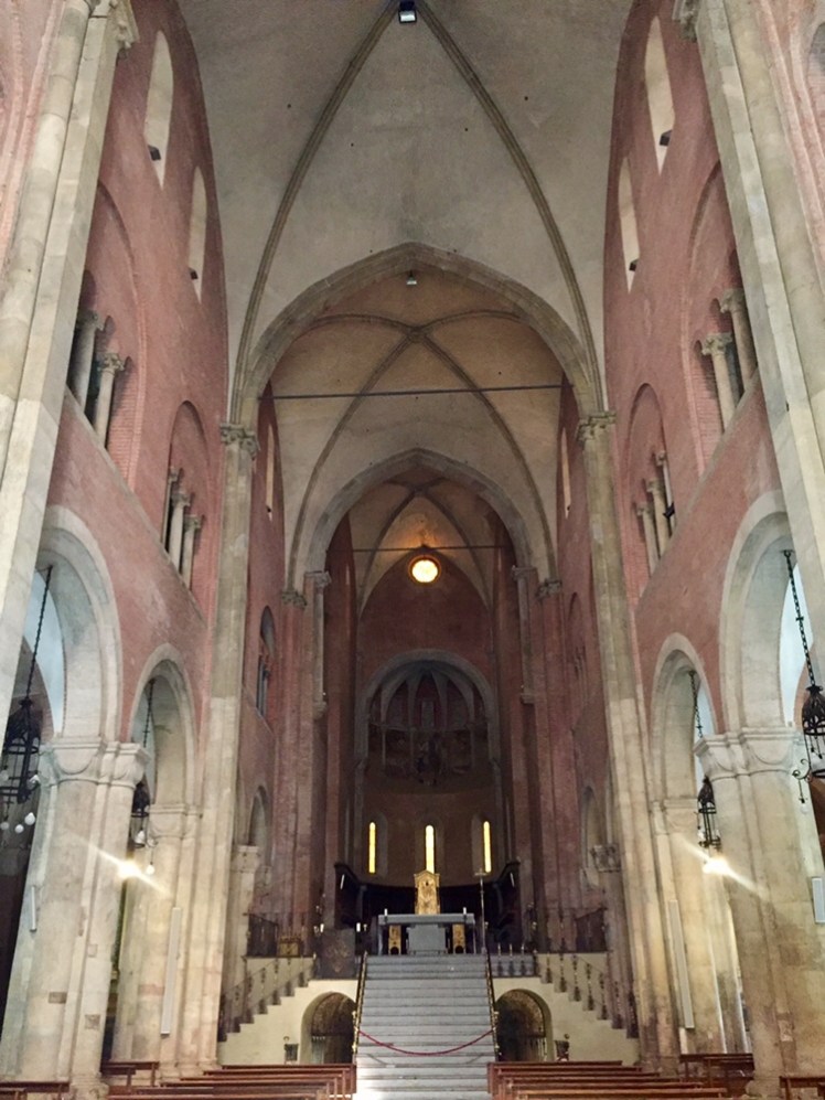 Visitiamo la chiesa e rimaniamo colpiti, oltre che dalla bellezza del suo stile romanico, dall’infiorata che, ogni anno, viene disposta sul pavimento della navata centrale per la festa del Corpus Domini.