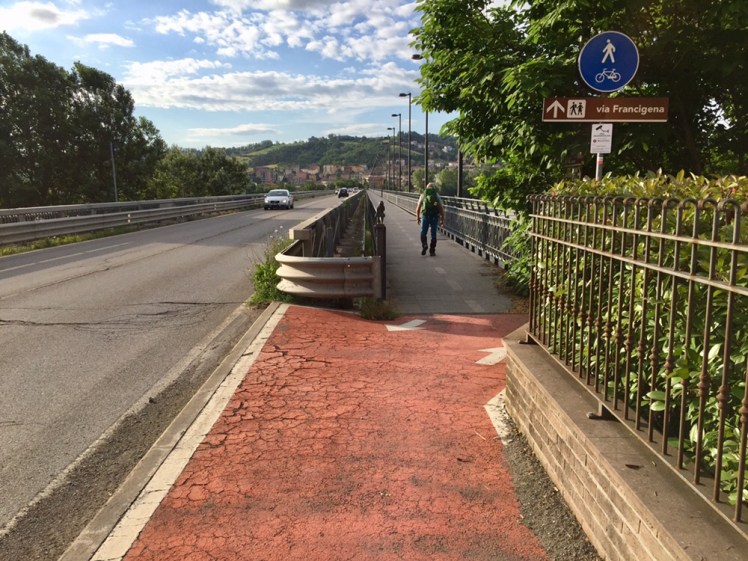 In un’oretta arriviamo al ponte sul Taro con passaggio pedonale ben protetto.