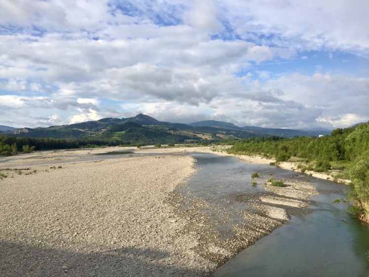 Lasciata la chiesa, entriamo subito su un sentiero del parco fluviale del fiume Taro. Siamo all’interno dell’area golenale e ogni tanto si intravede, tra gli arbusti, il fiume. Siamo anche costretti a guadare due piccoli torrenti.
