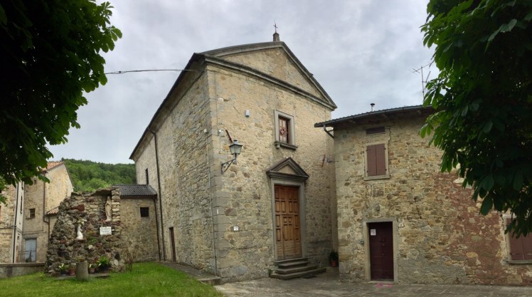 A Terenzo inizia a piovere. Passiamo davanti alla bella chiesa romanica di Santo Stefano.