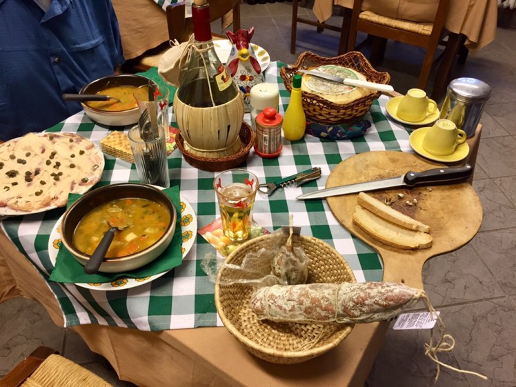 La sera ceniamo con un’ottima zuppa, del vitello tonnato, formaggi e salumi a volontà!