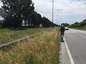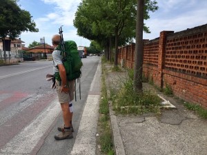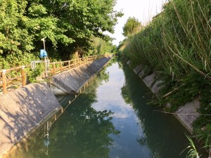 La nostra tappa oggi si svolge interamente in zone urbanizzate. Avevamo il desiderio di percorrere la pista ciclopedonale che corre lungo il Canale Lunense ed inizia poco dopo l’uscita dalla Porta Romana. Non avevo però letto della vita travagliata di questa pista e non sapevo cosa mi stesse aspettando! A meno di cinque chilometri dal centro storico di Sarzana, dovrebbe iniziare la bella pista ciclabile lungo il Canale Lunense, ma arrivati lì ci siamo trovati davanti solo rovi e canne al vento. I locali, che in genere aiutano i pellegrini se li vedono in difficoltà, hanno capito che cercavamo la pista. Dopo i primi segni di imbarazzo, ci hanno spiegato, addirittura scusandosi, che l’unica cosa visibile sono i cartelli che la pubblicizzano.
