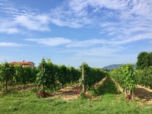 Ho un breve attimo di serenità quando passo di fianco ad un vigneto con i bei roseti che fanno da sentinelle.