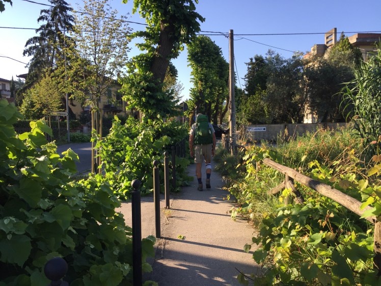Camminiamo poi per un lungo tratto su asfalto con banchina pedonale quasi sempre ostruita da rovi che rendono pericoloso il cammino. Siamo nella Val Freddana. Purtroppo non esistono vie alternative, questo è l’unico tracciato della Francigena.