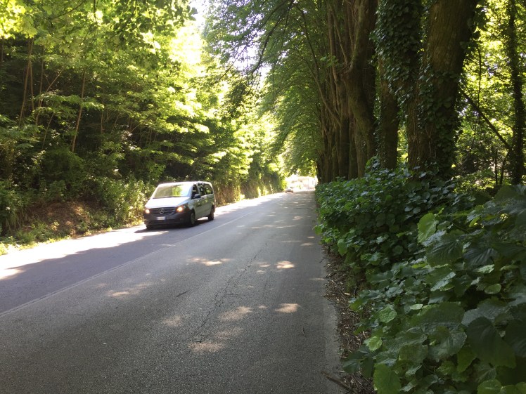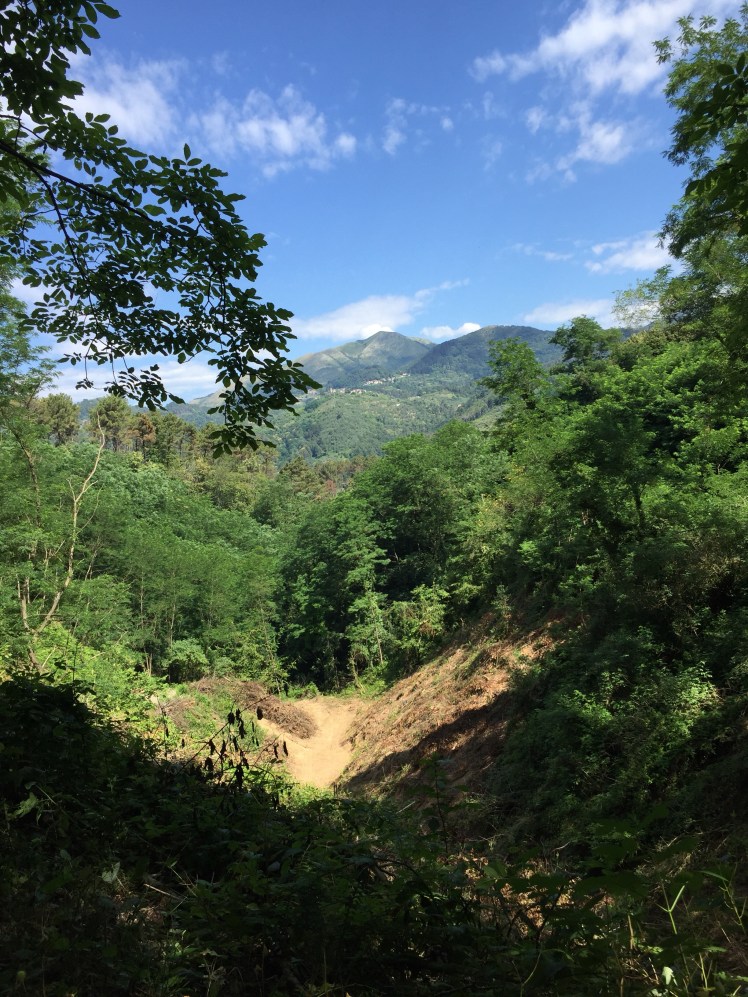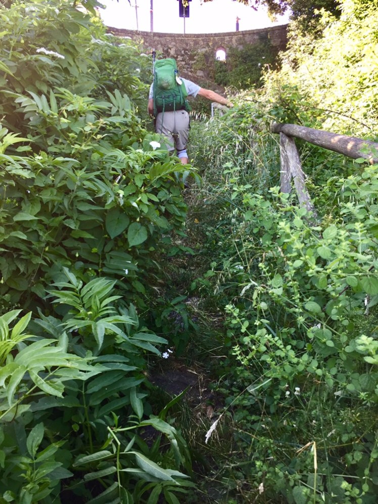 Prima di riprendere l’asfalto, ci aspetta una ripida salita su una mulattiera con fitti rovi non potati che rendono difficile il camminare.