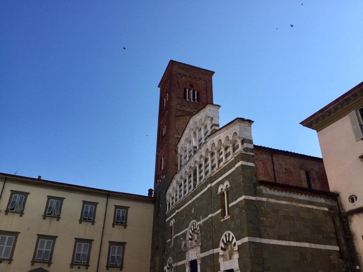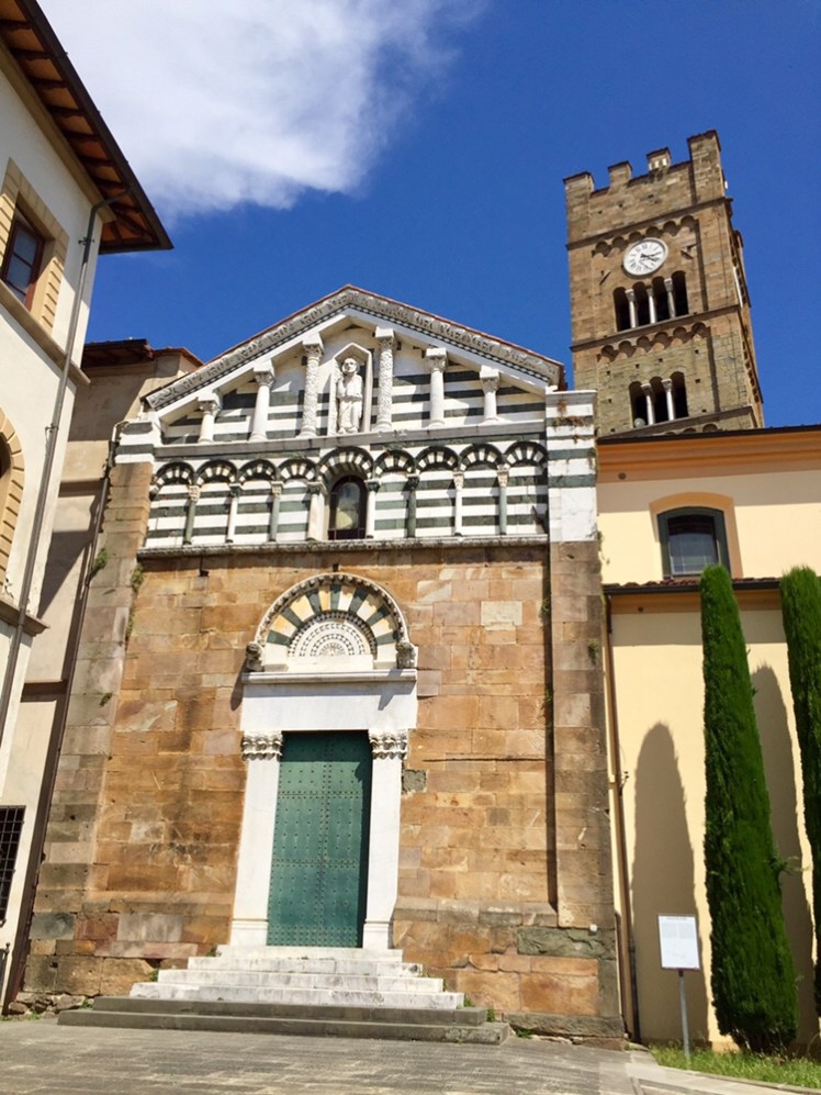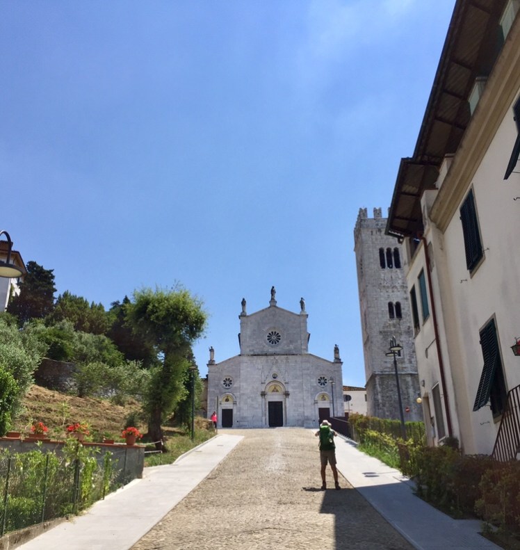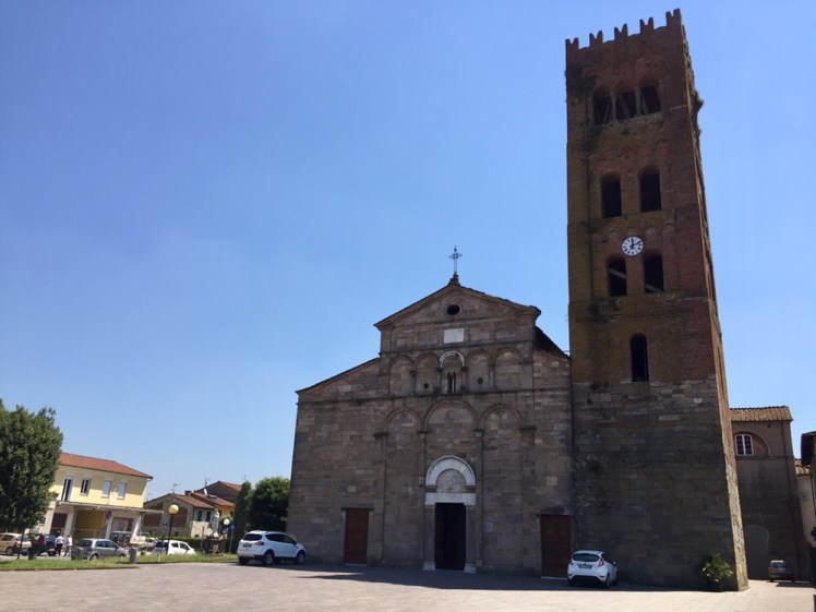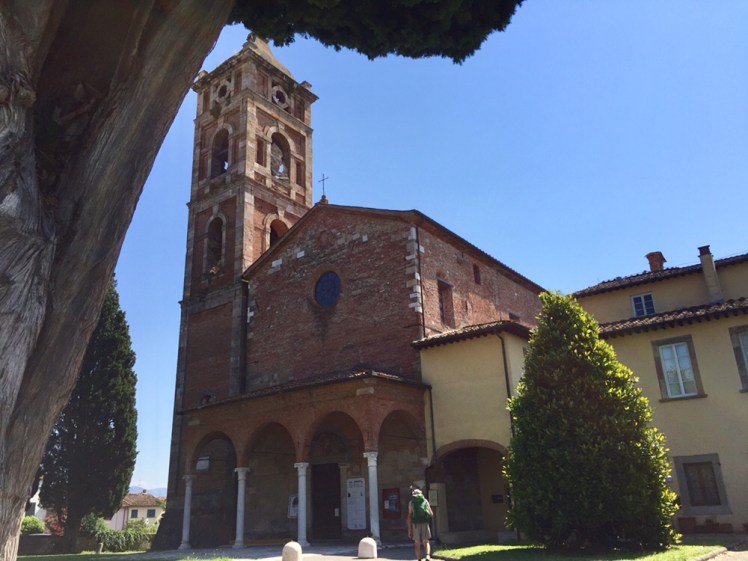 La bella chiesa di Porcari, dedicata a San Giusto, è arroccata su una collina e per raggiungerla si deve affrontare una ripida salita che con la canicola è ancora più faticosa.