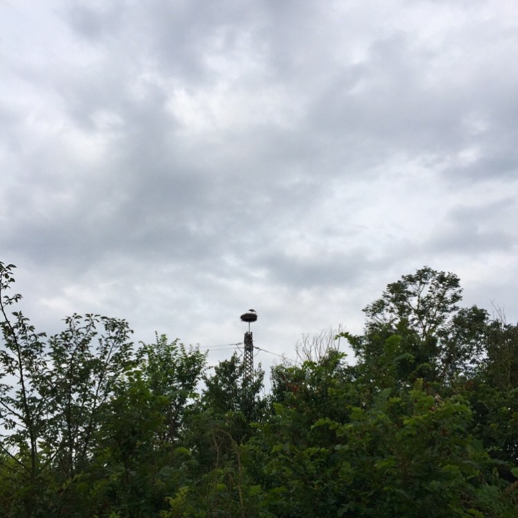 E poco dopo ci accorgiamo che su un traliccio dell’alta tensione c’è un grande nido di una cicogna che rimane lì, spostandosi ogni tanto da un lato all’altro del nido.