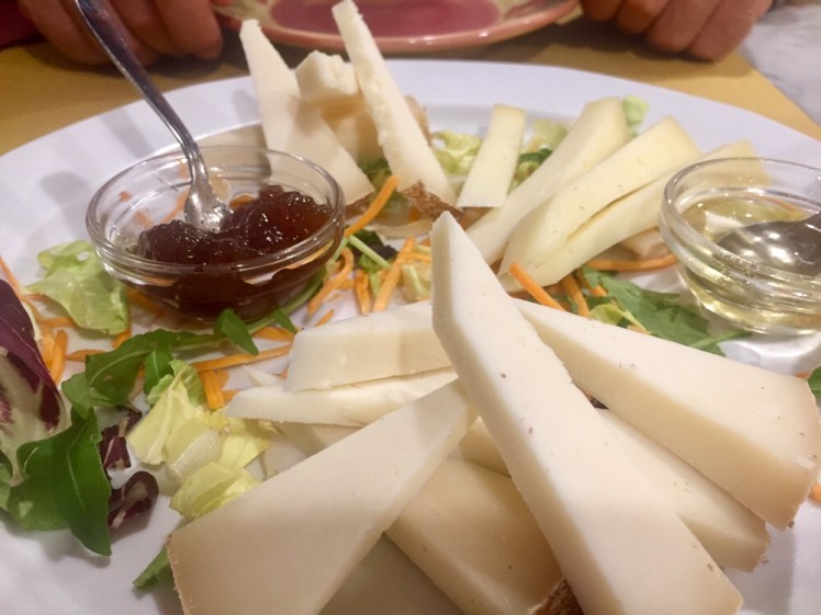 Facciamo timbrare le credenziali in un negozio di alimentari che fa questo servizio gratuitamente, ma noi ne approfittiamo per avere una scorta di cibo in caso di assenza di servizi nel resto della tappa. Adocchio una frittatina di spinaci e, dopo una lunga e surreale, quasi comica discussione con la negoziante su come incartarla: con o senza plastica, con o senza sacchetto, con o senza carta, finalmente s’è deciso per carta plastificata e sacchetto di plastica per evitare l’unto nello zaino. Abbiamo tutti tirato un sospiro di sollievo per la saggia decisione, ci siamo salutati e siamo ripartiti.