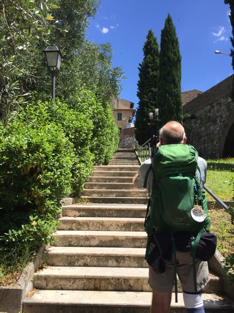 Percorriamo da subito le terribili, per i polmoni del pellegrino, strade bianche, in un saliscendi continuo tra viali coi cipressi e poderi estesi.