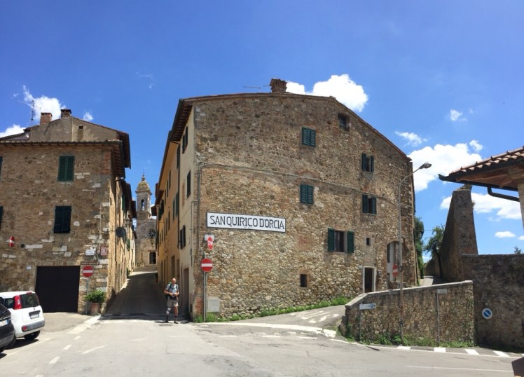 Arrivati a Torrenieri, altro paesino medievale cresciuto con la Francigena, facciamo una meritata pausa nell’unico caffè presente.