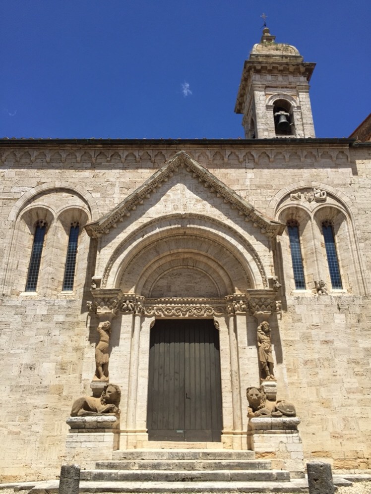 Ogni scalino è come un macigno da sollevare, ma si viene premiati, una volta in cima, dalla bellezza di San Quirico d’Orcia. Entriamo dalla porta Senese e subito visitiamo la Collegiata dei santi Quirico e Giulitta.