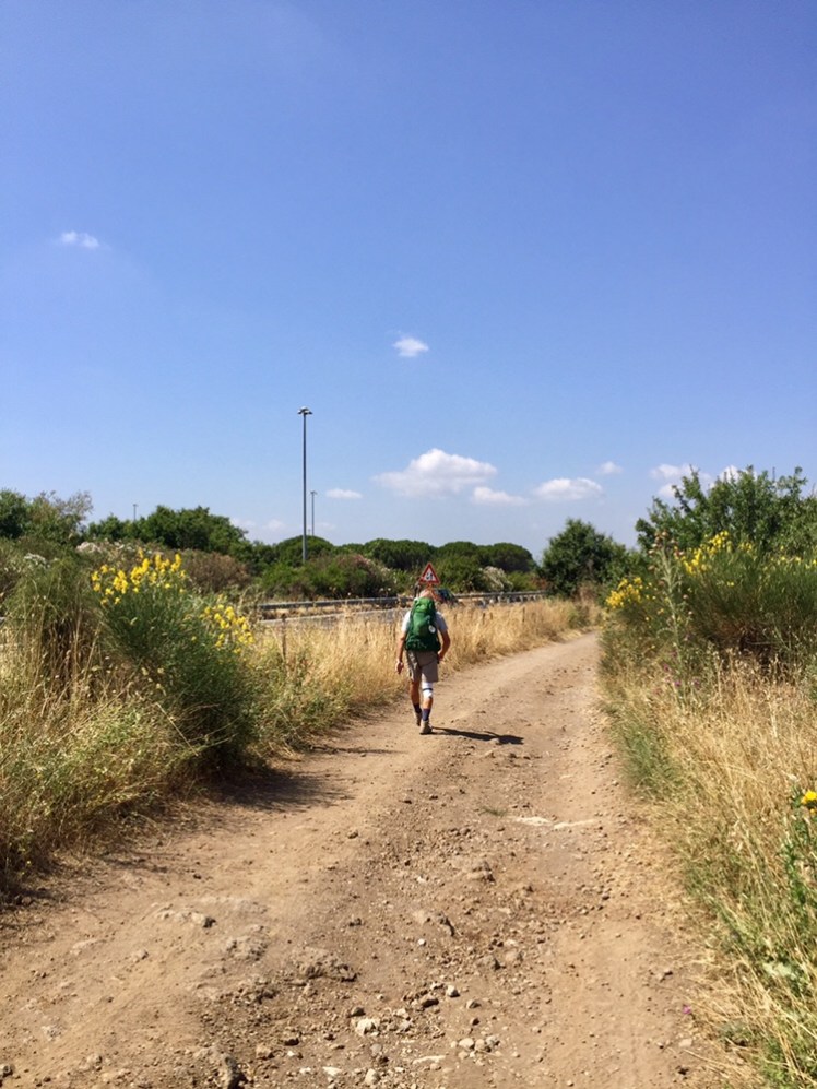 La Francigena oggi è deprimente! Troviamo ovunque rifiuti di ogni genere, materiali ingombranti e non. E troviamo anche il cartello con questa scritta: “Questa è la via Francigena. Non gettare rifiuti”. Dopo 900 chilometri di “rispetto per l’ambiente”, e senza cartelli che suggeriscano di non sporcare, non mi sarei mai aspettata tanto degrado. Da quando ho iniziato la Francigena, dalla Val d’Aosta, ho attraversato alcune periferie brutte sì, (a causa di scelte scellerate dei politici che permisero la loro edificazione), ma senza degrado; ho incontrato sentieri bloccati da rovi, ma è la crescita naturale dei boschi; ho percorso strade senza banchine di sicurezza per i pedoni perché invase da erbacce, ma è una mancanza di sfalciatura, non degrado.