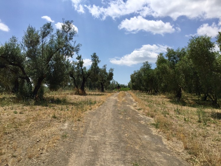 Tra un oliveto e l’altro, incontriamo grandi serre, ma in una zona sopraelevata che non mi permette di curiosare all’interno per vedere cosa ci si coltivi.