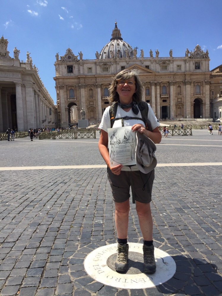 Al contrario di quanto accade a Santiago durante la consegna della Compostela, non ci interrogano sui motivi del nostro cammino. La gentile signorina si limita a compilare il Testimonium coi nostri nomi e ce lo consegna.