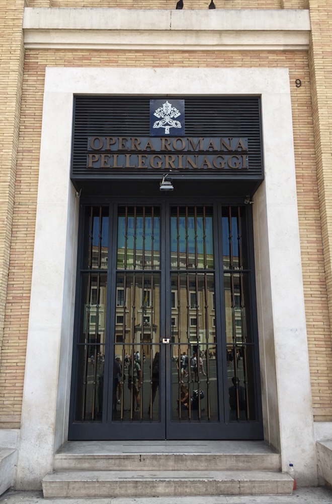 Leggendo le varie guide cartacee e online, pensavamo fosse semplice. Non è stato così. Dopo vari giri tra uffici chiusi o inesistenti, arriviamo finalmente all’ufficio “OPERA ROMANA PELLEGRINAGGI” in piazza Pio XII (guardando S. Pietro, a sinistra), davanti ad una signora che sorridendo ci dice di essere nel posto giusto. Ci dice anche che tutti gli altri indirizzi indicati dalle varie guide da noi consultate, sono di uffici sempre chiusi.