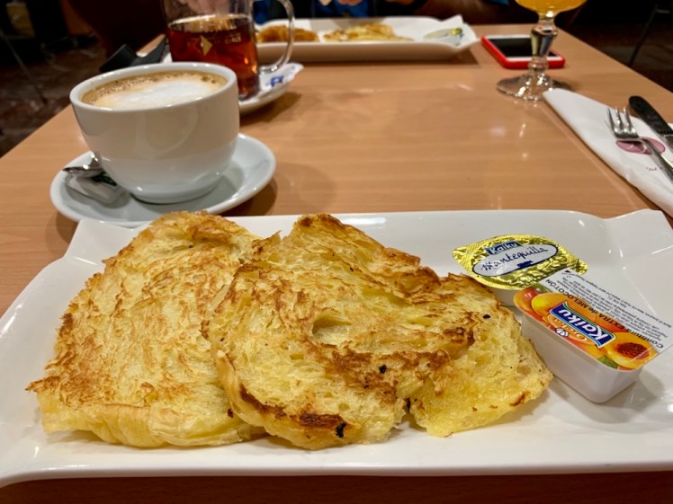 Ho pensato che sarebbe stato meglio rimettermi al calduccio, sotto le coperte e sperare in un’apertura del cielo più tardi. Purtroppo, le mie speranze sono state vane. Intorno alle nove abbiamo fatto colazione alla maniera spagnola: