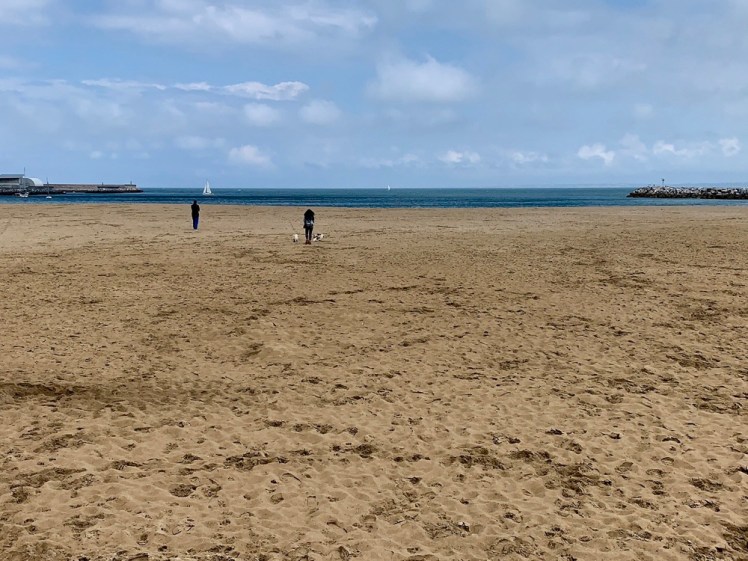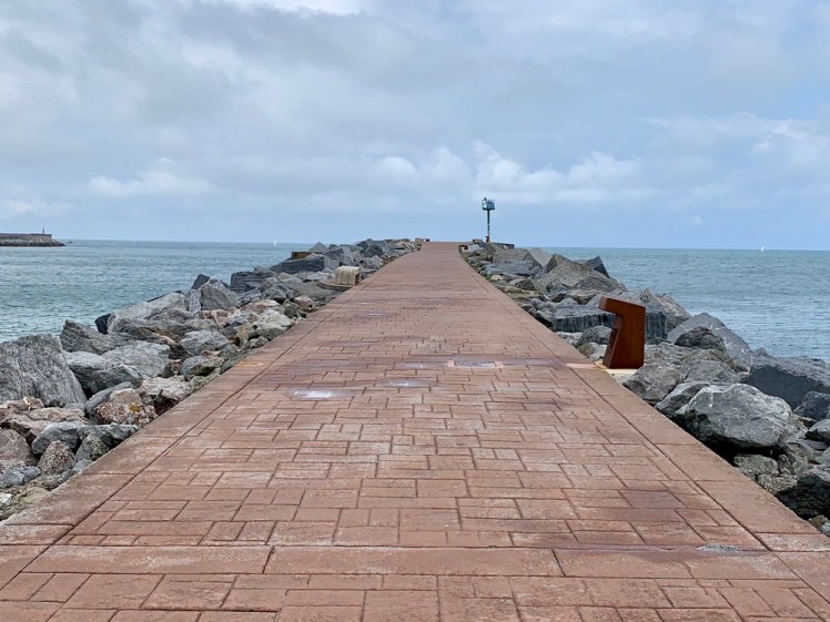 Dopo esserci scaldati, ci siamo diretti verso la bella spiaggia e il porticciolo, sui quali affaccia una lunga diga che segna il confine tra la Spagna e la Francia.