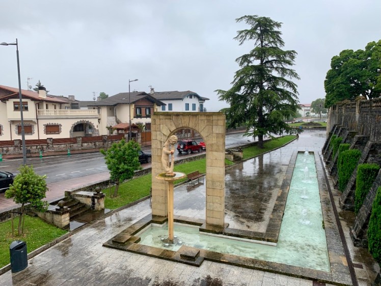 Ripreso l’E25, siamo scesi alla fermata del centro di Irun. Abbiamo cercato un centro commerciale aperto, per scaldarci e aspettare, sperando spiovesse. Questa volta siamo stati accontentati. Abbiamo fatto un lunch veloce e subito ci siamo diretti verso le poche attrattive turistiche di Irun.