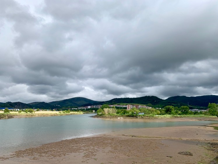 La nostra passeggiata è continuata sul lungofiume Bidasoa. Qui si trova una lunga pista ciclopedonale che fiancheggia il fiume e collega vari isolotti del suo estuario. Uno di questi è l’isola dei Fagiani: unico caso in Europa di sovranità condivisa fra due stati. Viene amministrata sei mesi dalla Francia e sei mesi dalla Spagna.