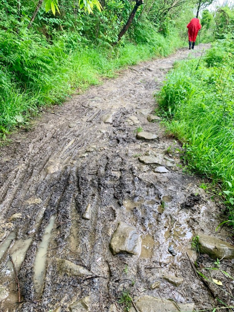 Rientrati sul sentiero, è ricominciata la gimcana tra fango, pozzanghere e sassi scivolosi.