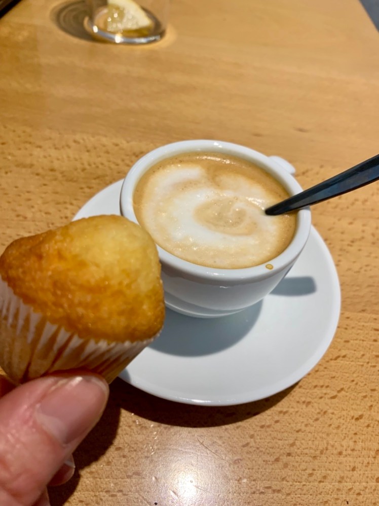 Sul lungomare non c’era possibilità di fare colazione, stavamo disperando, ma, spiando tra le vie laterali, vediamo una luce in un negozio e tanta attività nelle sue vicinanze. Deviamo dal percorso e ci incamminiamo speranzosi verso la luce. Era un bar, ovviamente affollato di lavoratori le cui attività richiedono di essere mattinieri.