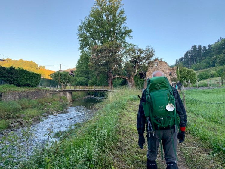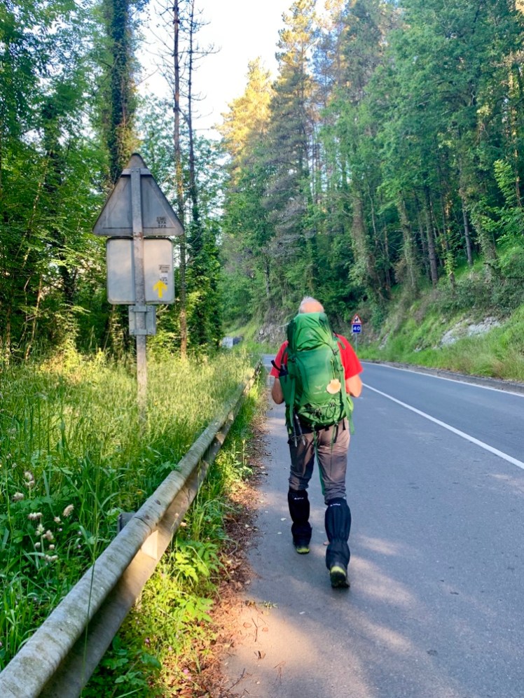 Ci avviamo in una Markina deserta, ma appena arriviamo all’ostello, ospitato in un convento, vediamo uscire alla spicciolata diversi pellegrini. In una lunga fila indiana, ci si incammina sul sentiero, appena fuori dal centro storico. I più in forma sorpassano e scompaiono alla vista, gli altri si accodano tranquillamente.