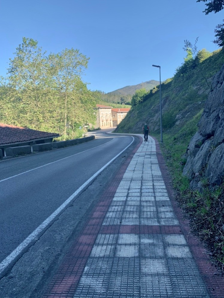 Arriviamo in un paesino, Mutinibar, e anche qui, appena entriamo in paese, ci accompagna un bel marciapiedi, fino ad un bar dove facciamo uno spuntino veloce. Scelgo un delizioso panino imbottito con frittata e “jamon Serrano”.