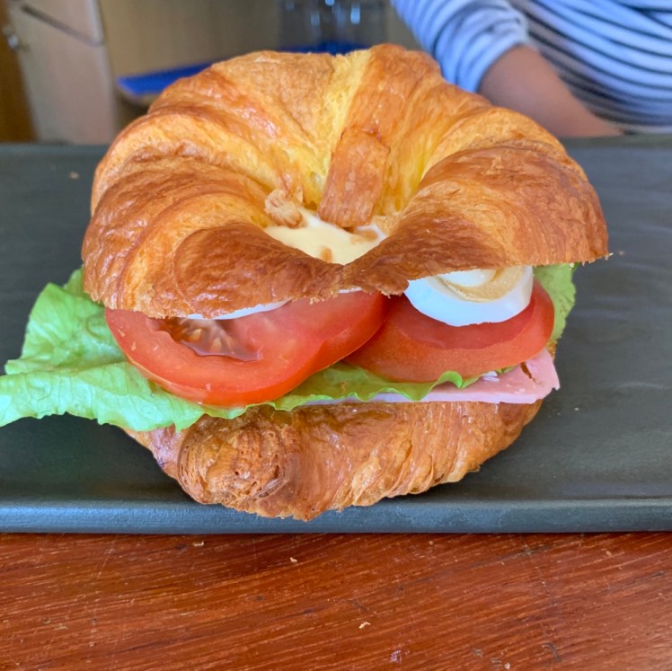 Intorno alle 11:30, quando lasciamo la BI-2224, passiamo davanti ad un bar che serve panini e croissant deliziosi. Scelgo il croissant con prosciutto, pomodoro, insalata, tonno e maionese. A seguire, un ottimo caffè.
