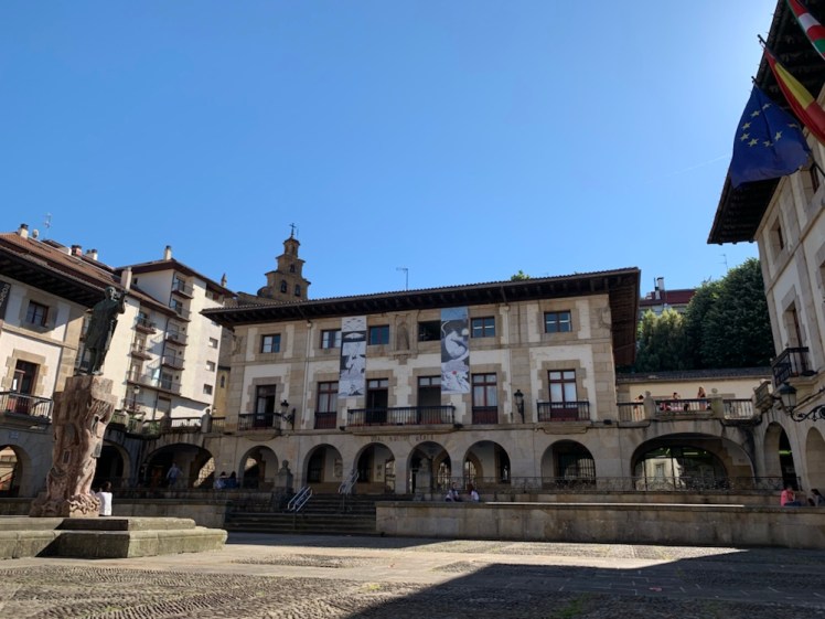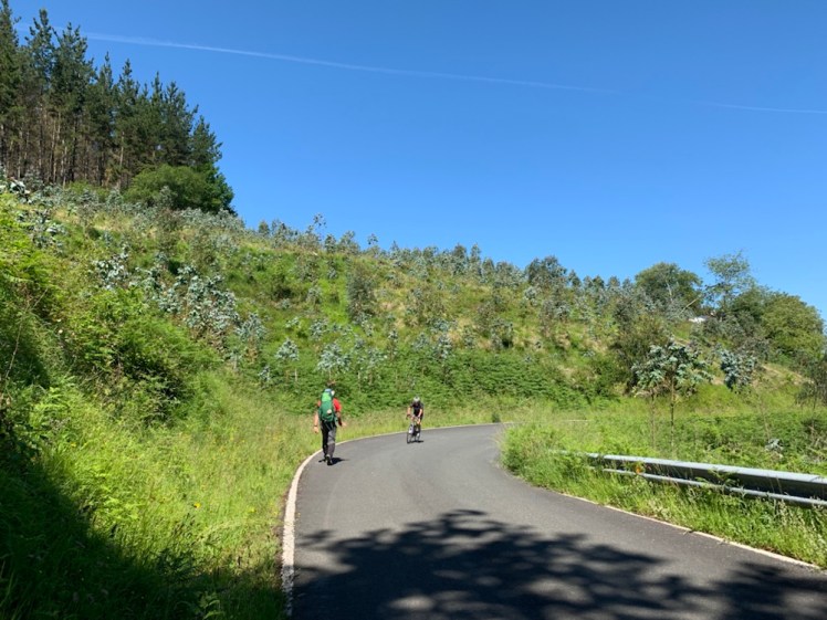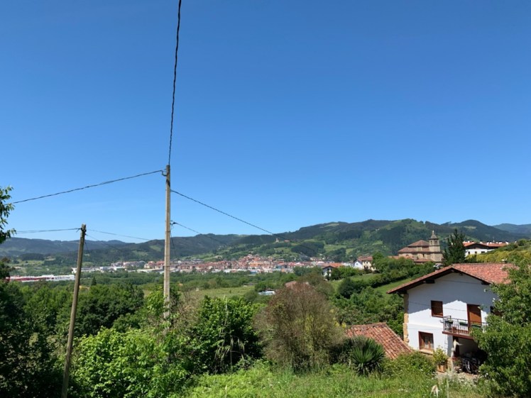 A circa 6 chilometri dall’arrivo, intravediamo in lontananza la città di Guernica. Siamo contenti e ci sembra di sentire di meno la fatica.