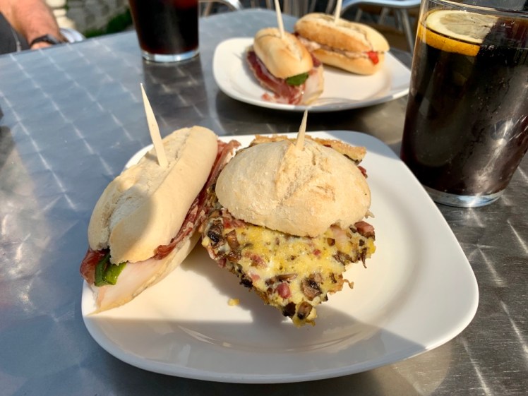 Scelgo due piccoli boccadilli. Uno con frittatina al prosciutto Serrano e funghi, l’altro con prosciutto e l’immancabile peperone.