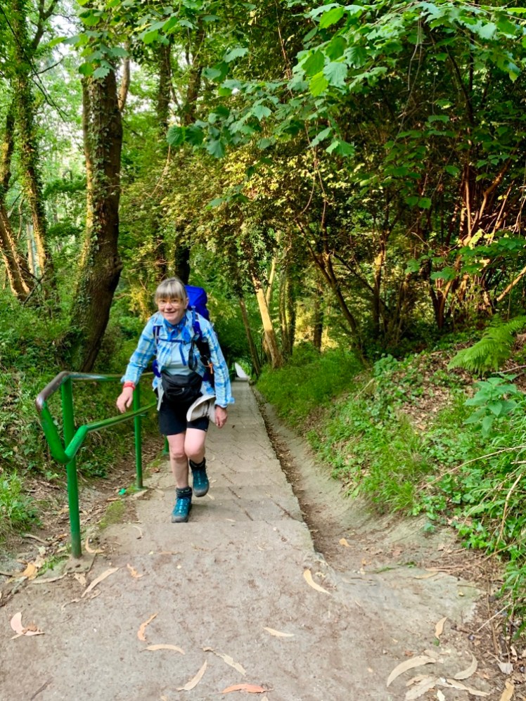 Il cammino si addentra subito nel bosco e ben 119 scalini si presentano davanti a noi. È una fortuna averli all’inizio tappa, penso!
