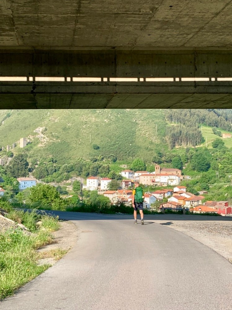 Passiamo sotto un viadotto dell’autostrada, il degrado regna sovrano, purtroppo. Noto con dispiacere che la cura del paesaggio notata nei Paesi Baschi, qui è carente. Ai lati delle strade, è spesso presente spazzatura e le erbacce non vengono tagliate.