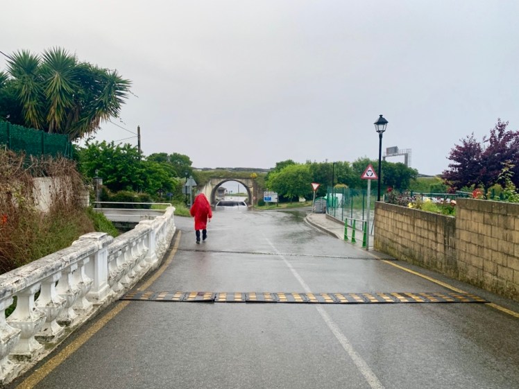 Arriviamo ad un bar dove posso riposarmi e fare uno spuntino. Subito ripariamo ed entriamo sulla strada 634 che ci porta alla foce del Rio Aguera. Quando arriviamo c’è l’alta marea che quasi lambisce le abitazioni di Oriñon.